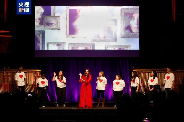 活動(dòng)上,紐約市兒童合唱團(tuán)深情演繹歌曲《呼喚之歌》《明天的彩虹》。美國失聰歌手曼迪·哈維攜手多位聽障學(xué)生,共同演唱歌曲《人生杰作》,并用手語向現(xiàn)場嘉賓表達(dá)祝福。
