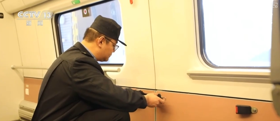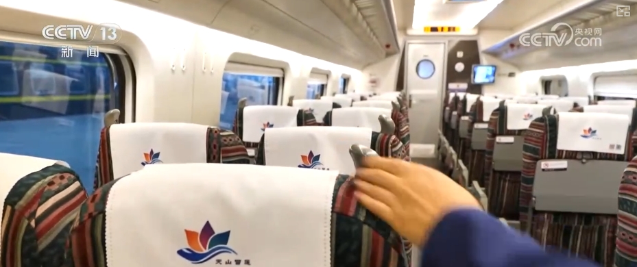 國鐵烏魯木齊局烏魯木齊客運(yùn)段C845次列車員阿依江介紹,動(dòng)車座椅上的這個(gè)犄角叫“羊角把”,是旋轉(zhuǎn)座椅的“小把手”。當(dāng)動(dòng)車組列車抵達(dá)終點(diǎn)站,再返程時(shí)列車運(yùn)行方向變了。為了讓旅客面向列車前進(jìn)的方向,這樣視覺更加舒適,他們會(huì)在終點(diǎn)站把座椅旋轉(zhuǎn)180度。像這樣腳踩座椅下方的旋轉(zhuǎn)腳踏,再用手抓住“羊角把”,輕輕一拉就能調(diào)轉(zhuǎn)座椅方向。