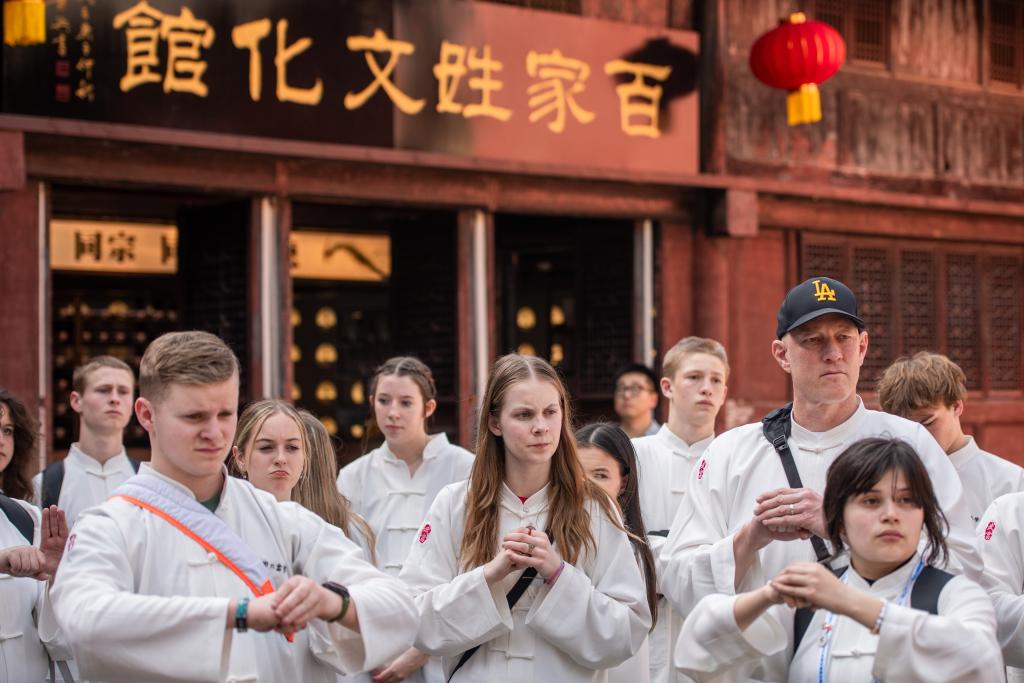 春天,湖北武當山。野馬分鬃、白鶴亮翅、摟膝拗步……美國斯特拉孔中學學生梅肯娜以“武”會“友”,笑說“我現(xiàn)在是功夫大師!”
