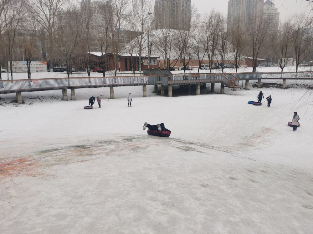 在哈爾濱湘江公園,28日一早,10歲的黃梓天就和爸爸一起來玩雪圈。這處公園里形成的自然雪坡,每年冬季都成為市民滑雪圈的好去處。“早上孩子要來,就帶著過來玩一會,也是一種過年的方式。”黃梓天的父親黃文說。