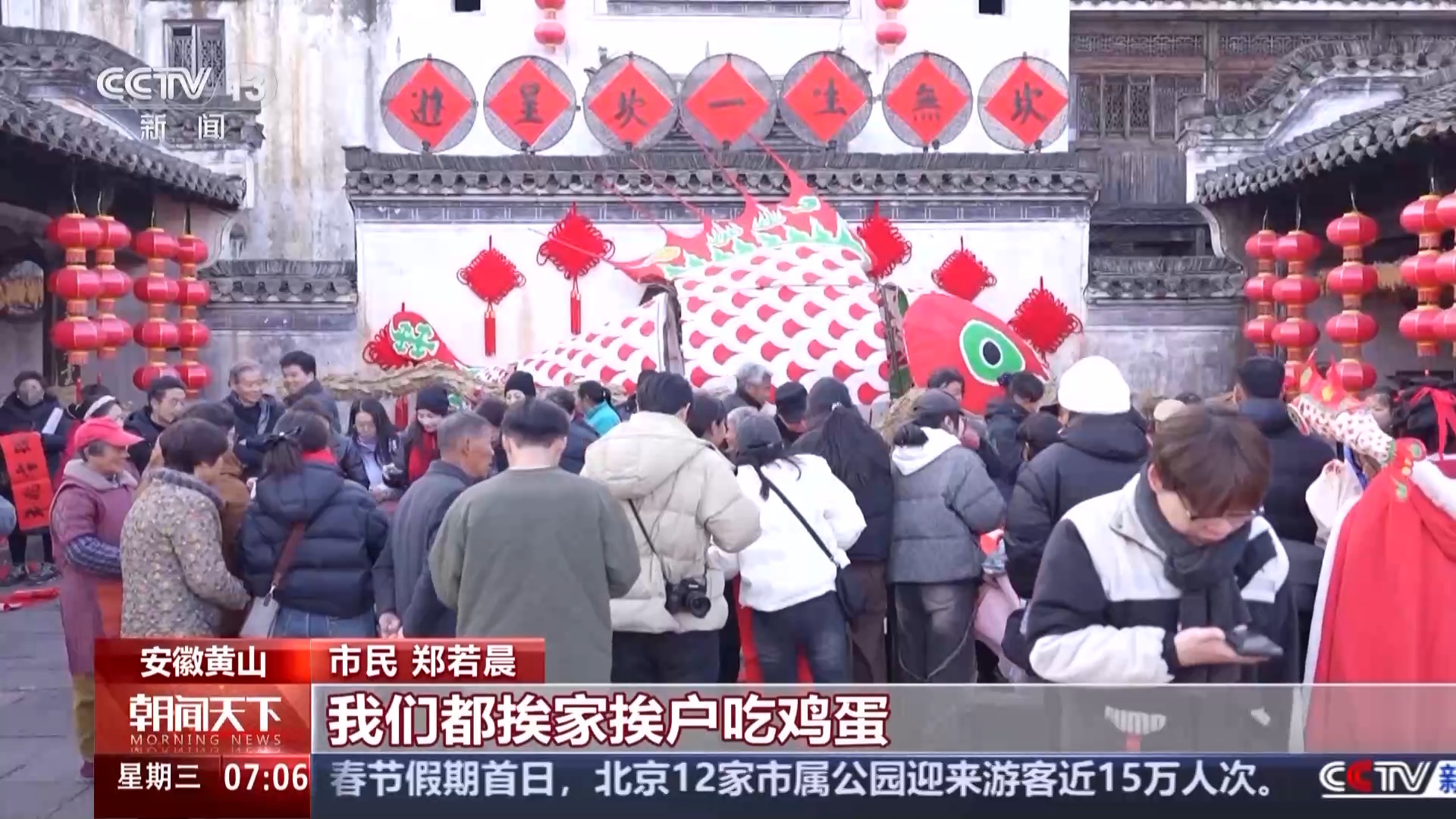 安徽黃山市民 鄭若晨:每年過年的時候,我們都挨家挨戶吃雞蛋。以前經(jīng)濟(jì)沒有這么發(fā)達(dá)的時候,雞蛋就是一個比較好的東西,拿出來招待客人。我們徽州人還是蠻延續(xù)傳統(tǒng)的春節(jié)習(xí)俗的。