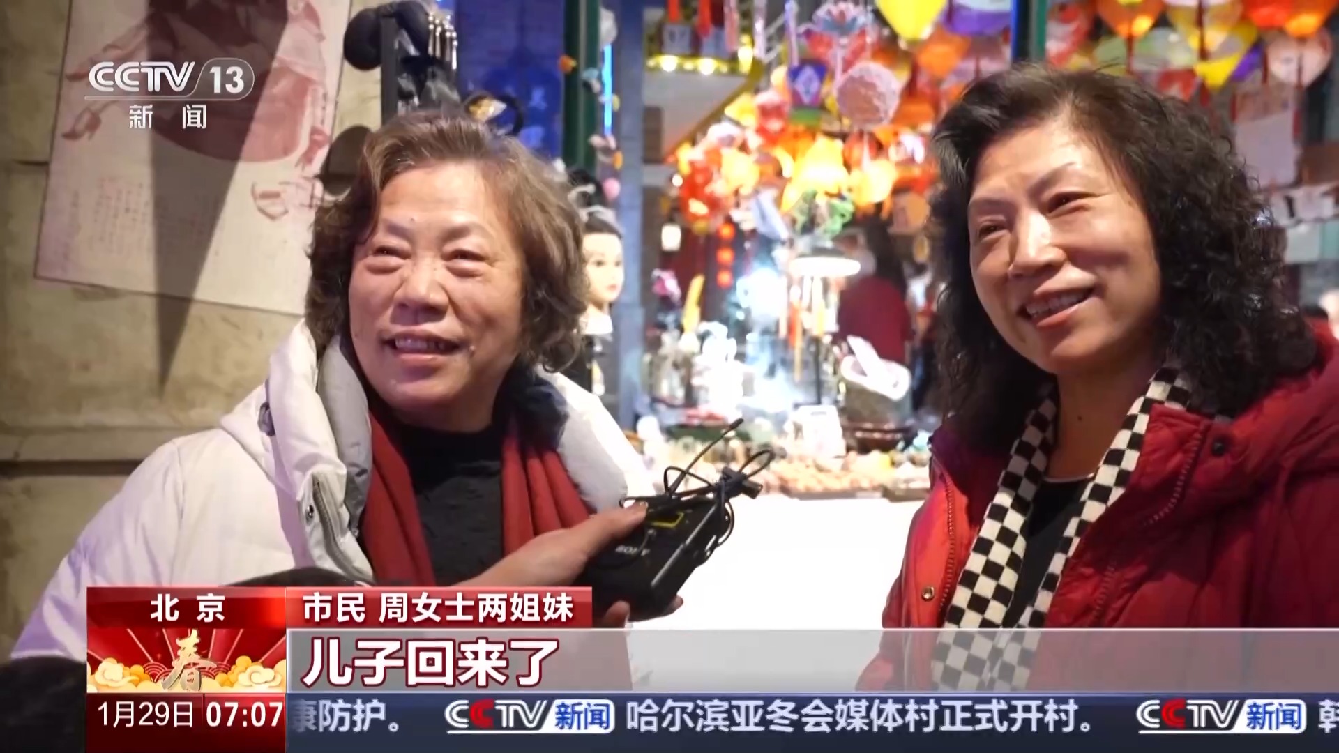 北京市民 周女士兩姐妹:跟兒子一起過。兒子回來了,跟兒子一起逛廟會,吃北京的小吃,豆汁、麻豆腐、焦圈,這都是北京的最愛。大家一起團(tuán)團(tuán)圓圓,談天說地,回憶這一年所走過的路程,展望未來。國家好,是家庭也好,孩子們都好,老年人生活更好。