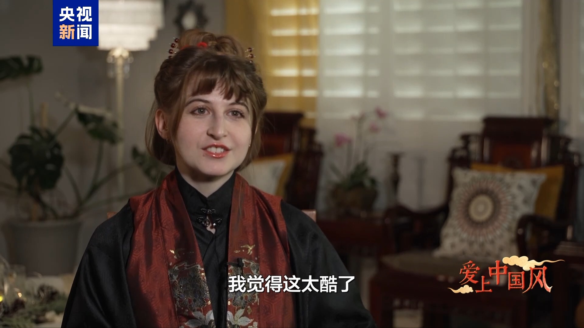 瑞秋:我在瀏覽網(wǎng)站的時(shí)候,我非常喜歡瀏覽時(shí)尚視頻,當(dāng)時(shí)看到了一個(gè)關(guān)于中國(guó)漢服的視頻,我當(dāng)時(shí)想這是什么?他們說(shuō),這是漢服的復(fù)興,年輕人正在把它帶回來(lái)。我覺(jué)得這太酷了。