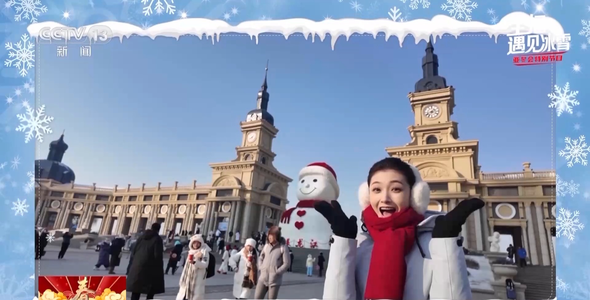 主播 遲茜:大家知道為什么叫“濱濱”和“妮妮”嗎?因為這是哈爾濱的濱,這是您好的您,諧音“妮妮”,表達(dá)了哈爾濱歡迎您,亞冬會歡迎您。
