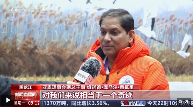 在接受總臺(tái)記者采訪時(shí),他表示很榮幸能成為本屆亞冬會(huì)的一名火炬手,并對賽會(huì)籌備工作給予高度評價(jià)。