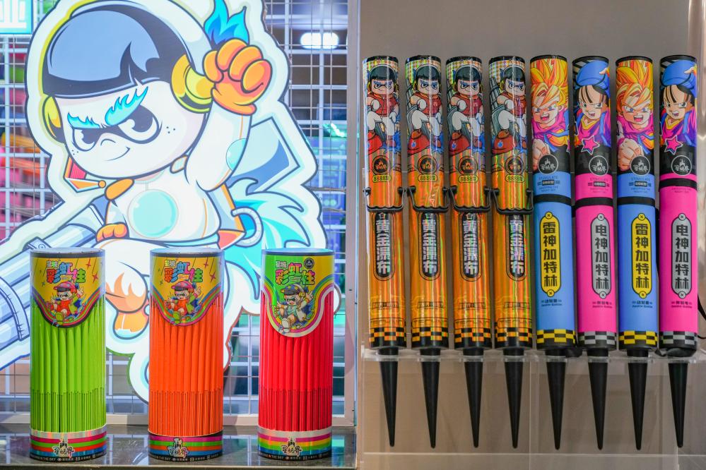 大瑤鎮(zhèn)一家花炮企業(yè)展示的“加特林”等網(wǎng)紅煙花。新華社記者 陳澤國(guó) 攝