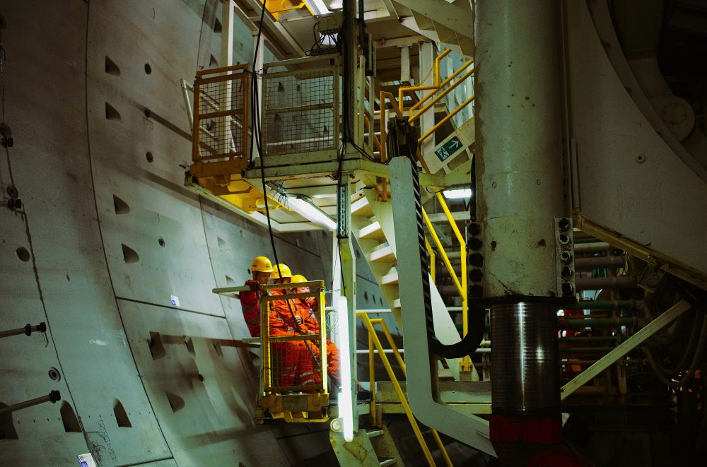 向隧道深處走去,正在作業(yè)的“山河號”盾構(gòu)機(jī)出現(xiàn)在記者眼前。作為在建世界最大直徑水下盾構(gòu)隧道的掘進(jìn)機(jī)械,開挖直徑達(dá)到17.5米的“山河號”盾構(gòu)機(jī)是世界在建最大直徑泥水平衡盾構(gòu)機(jī)。