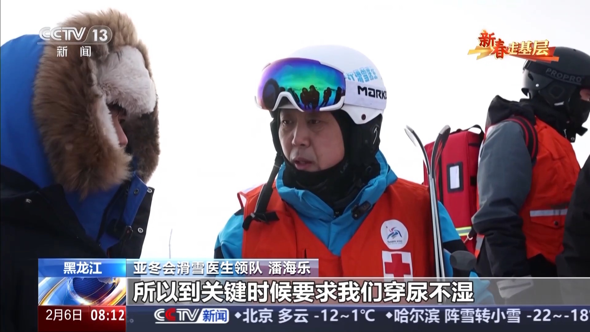 亞冬會滑雪醫(yī)生領(lǐng)隊(duì) 潘海樂:我們正規(guī)保障高坡度的這些滑雪醫(yī)生要保障四五個小時都不能動,所以到關(guān)鍵時候要求我們穿帶尿不濕。