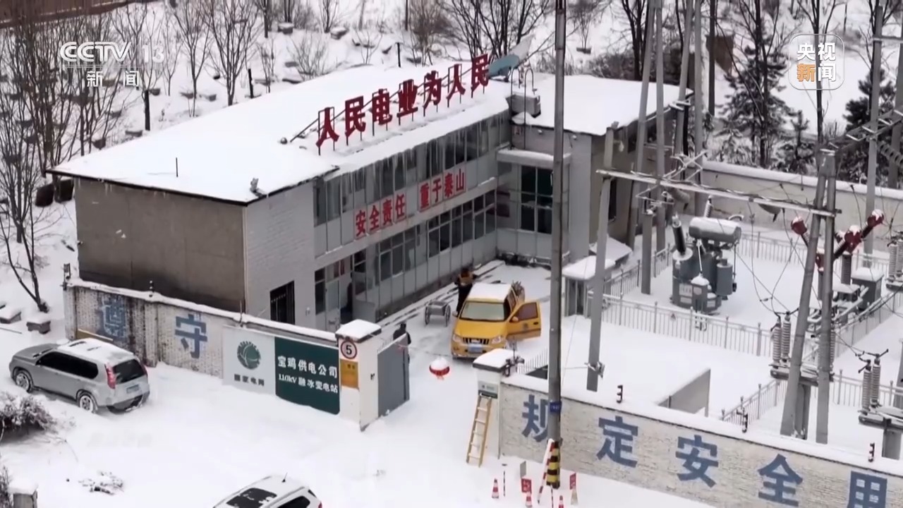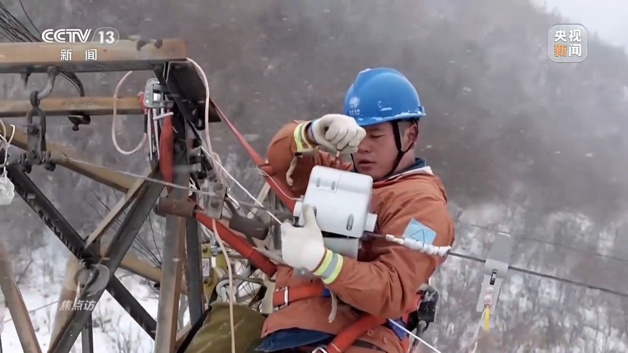 伴著2025春節(jié)的來臨,一場降雪為秦嶺披上銀裝。國網(wǎng)寶雞供電公司110千伏秦嶺融冰變電站,一臺(tái)安裝在輸電鐵塔上的監(jiān)測設(shè)備發(fā)生故障,工作人員正在商討對策。