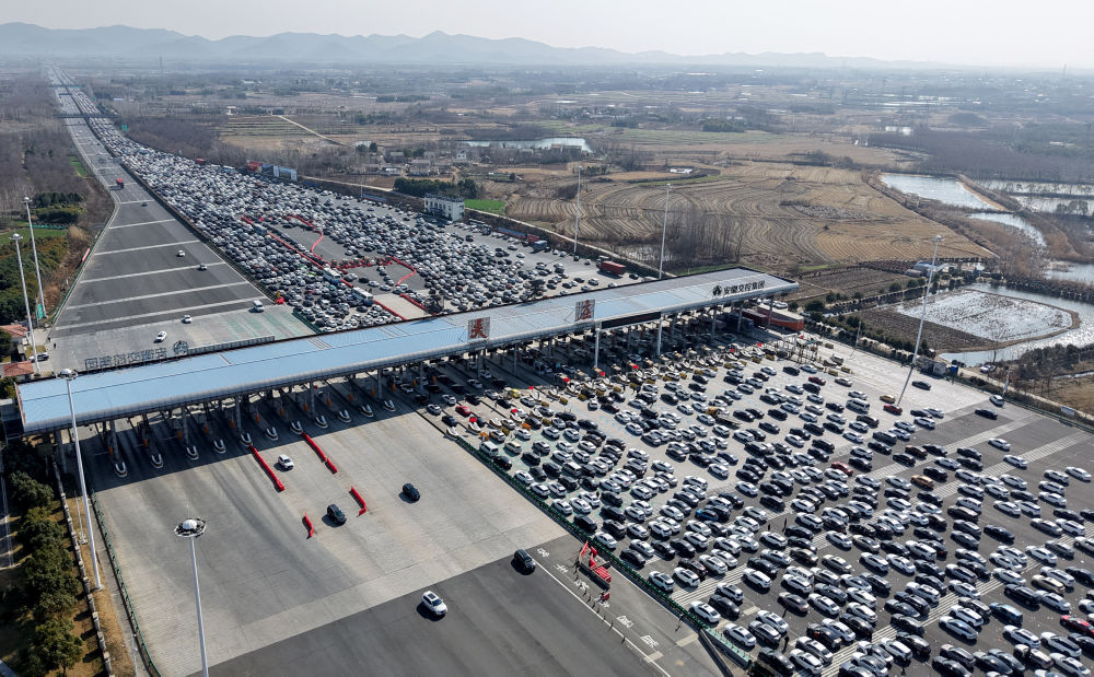 2025年2月4日,節(jié)后返程車(chē)輛通過(guò)合寧高速公路吳莊收費(fèi)站(無(wú)人機(jī)照片)。新華社發(fā)(沈果 攝)