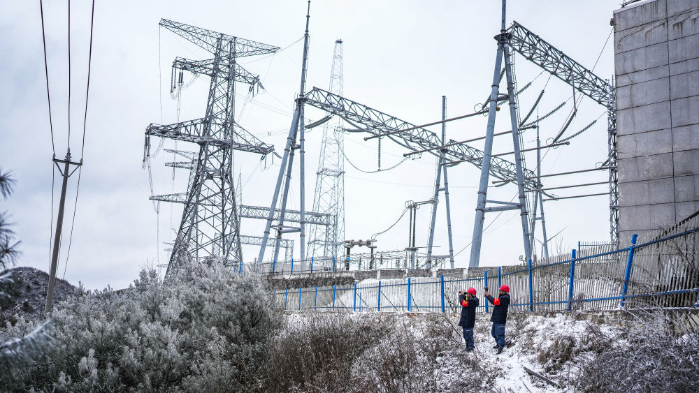 2025年1月26日,南方電網(wǎng)貴州六盤(pán)水鐘山供電局工作人員對(duì)轄區(qū)內(nèi)線路進(jìn)行覆冰觀測(cè)。新華社記者 陶亮 攝