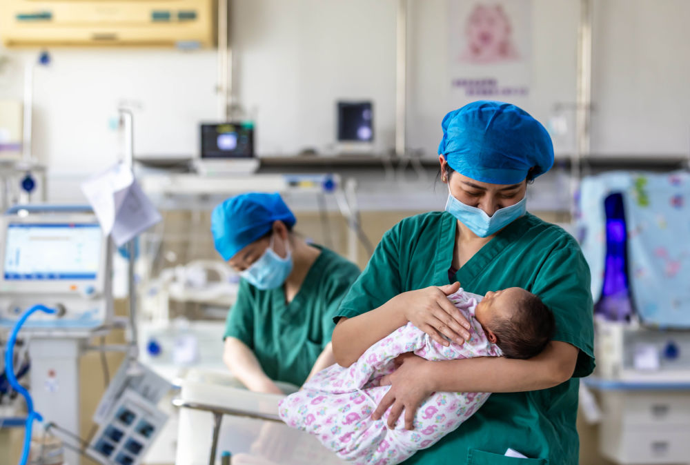 2025年1月29日,醫(yī)護(hù)人員在貴州省黔西市人民醫(yī)院新生兒科為新生兒做日常護(hù)理。新華社發(fā)(范暉 攝)