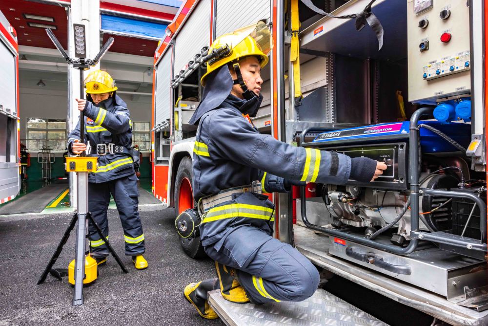 2025年1月29日,消防救援人員在貴州省安順經(jīng)濟(jì)技術(shù)開(kāi)發(fā)區(qū)消防救援大隊(duì)檢查裝備。新華社發(fā)(陳熙 攝)
