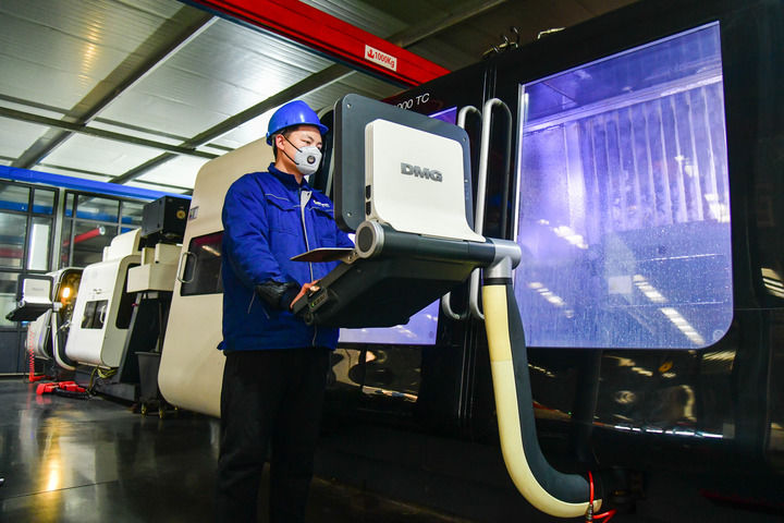圖為1月7日在山東省淄博市博山區(qū)域城鎮(zhèn)山東博科真空科技有限公司,工人在操作數(shù)控機(jī)床。新華社記者朱崢 攝