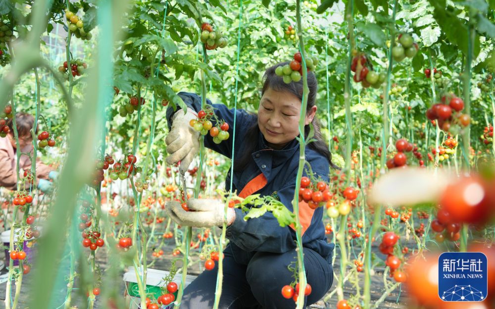 2月19日,在山東省濰坊市寒亭區(qū)前闕莊村,村民在收獲西紅柿。
