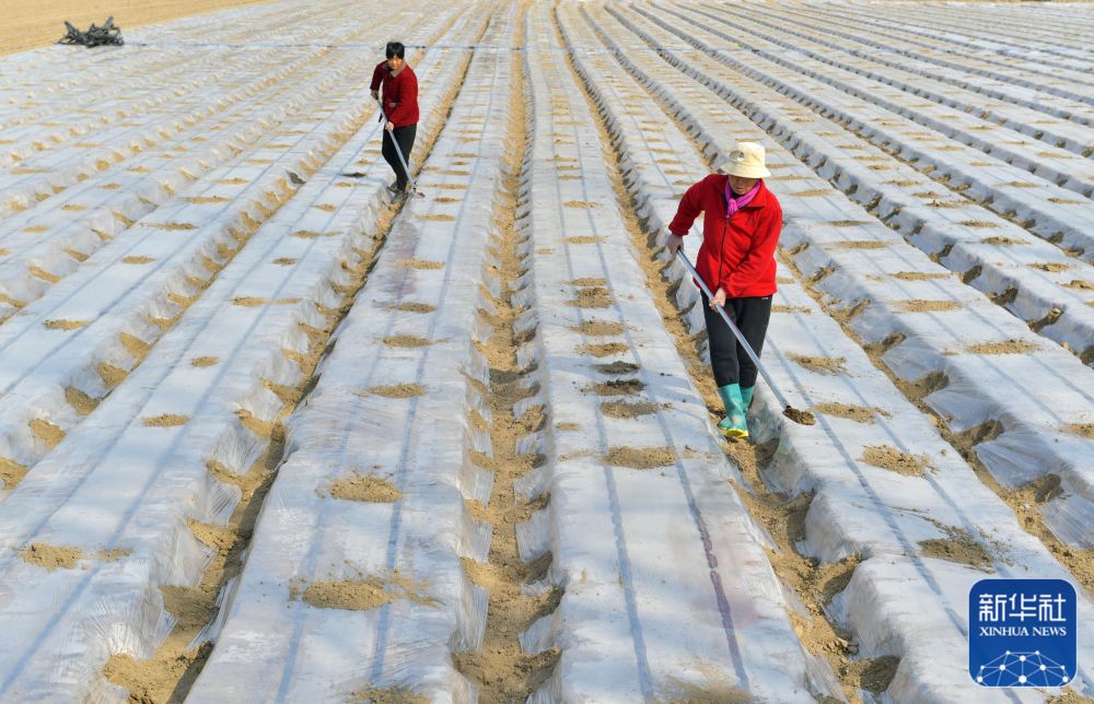 2月18日,在山東省滕州市界河鎮(zhèn)丁莊村,農(nóng)民在田間種土豆。