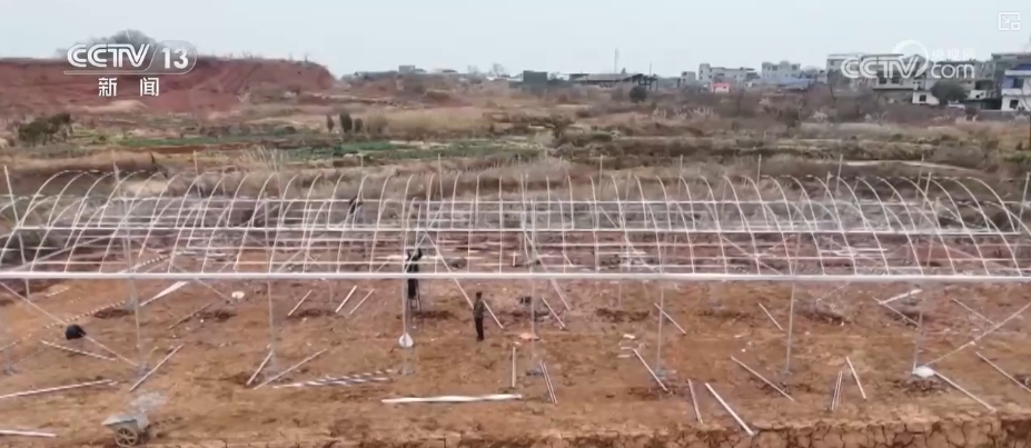 在湖南永州道縣,工人們正在抓緊建設(shè)集中綜合育秧大棚。大棚配套自動噴灌、恒溫、通風(fēng)等一體化設(shè)施,可一次性完成覆土、播種、澆水等作業(yè)流程。