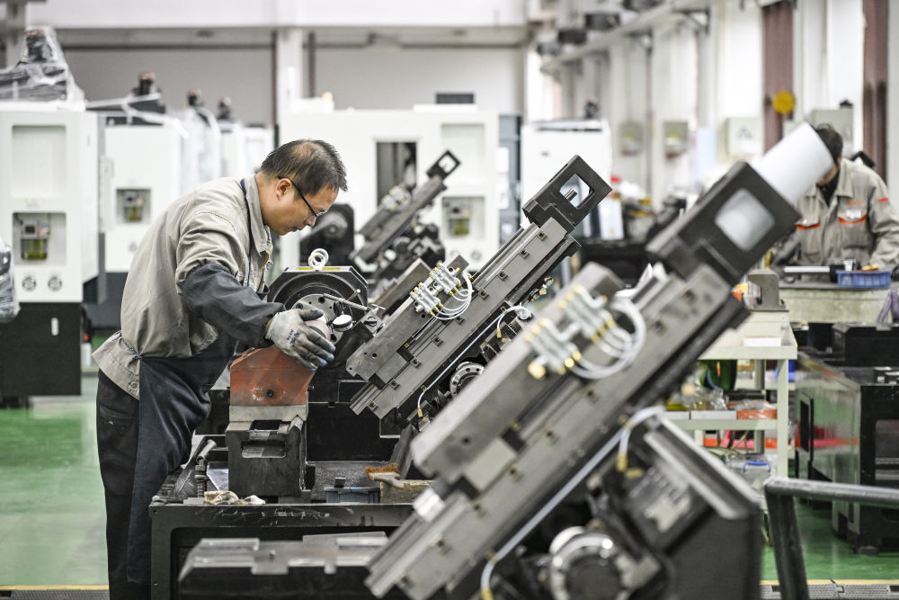 2月22日,工人在重慶宏鋼數(shù)控機床有限公司總裝車間作業(yè)。新華社記者 王全超 攝