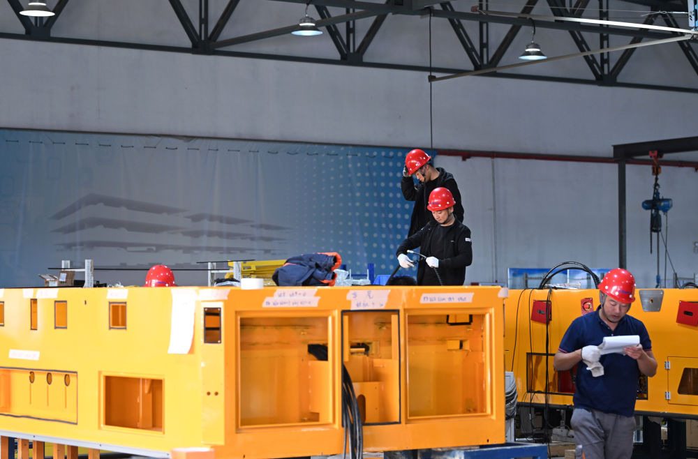 工作人員在天津朗譽(yù)機(jī)器人有限公司組裝設(shè)備。 新華社記者 李然 攝