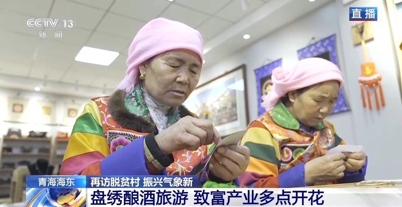 不僅是光伏發(fā)電,近幾年,村里因地制宜發(fā)展起土族盤繡、古法釀酒、鄉(xiāng)村旅游等多個致富產(chǎn)業(yè),還通過電商直播帶貨平臺,推廣村里自產(chǎn)的青稞酒、中藥材等農(nóng)特產(chǎn)品,讓村民實(shí)現(xiàn)就地就近就業(yè)的同時,也讓產(chǎn)品的銷路越走越遠(yuǎn)。