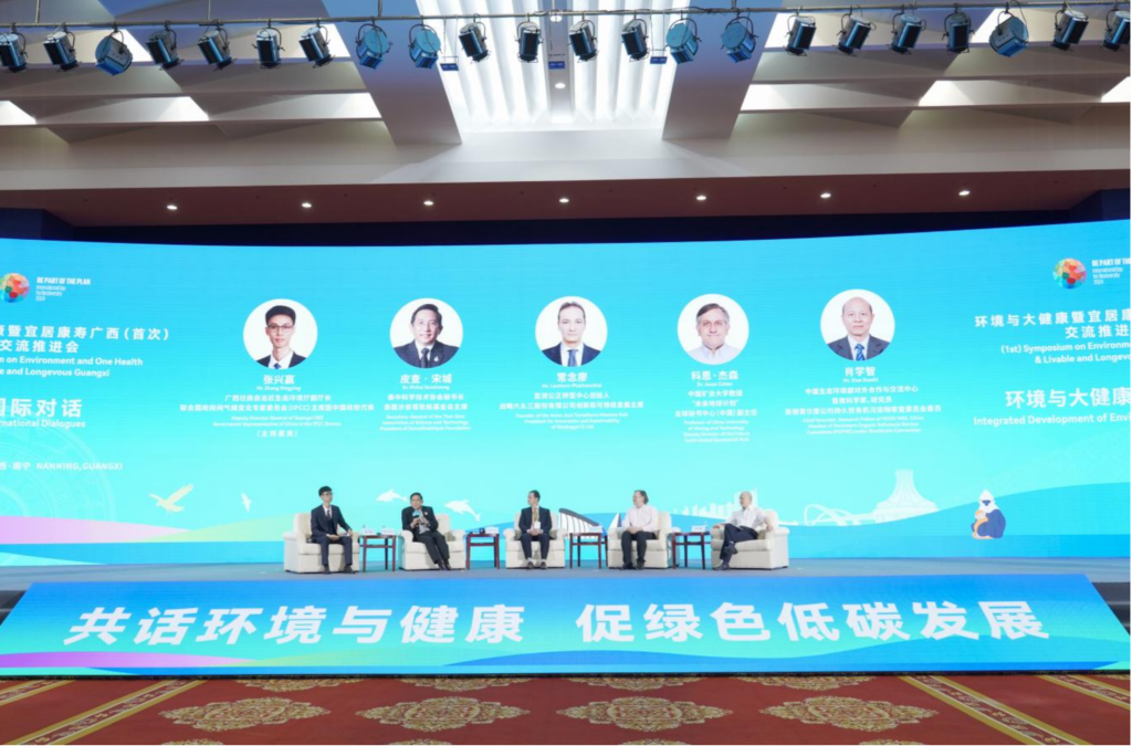 2024年5月18日,張興贏(左一)在環(huán)境與大健康暨宜居康壽廣西交流推進(jìn)會(huì)上主持國際對(duì)話會(huì)。新華社發(fā)