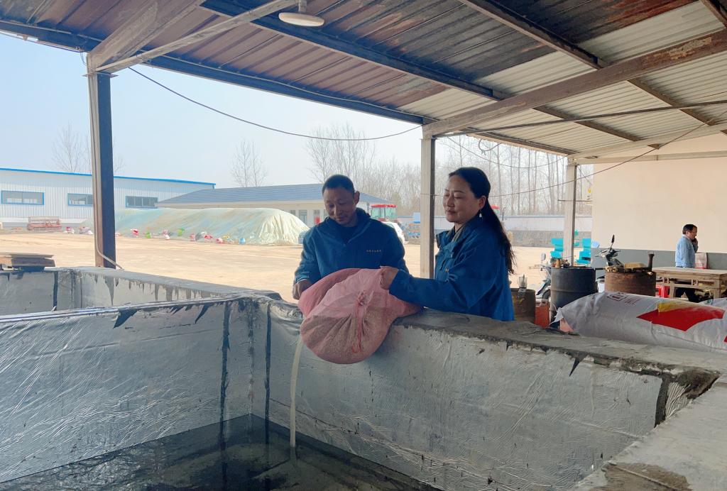 3月6日一大早,安徽省合肥市廬江縣農(nóng)技推廣中心主任吳晨陽來到種糧大戶田素平的合作社,指導早稻育秧工作。只見田素平打開包裝袋,將一袋袋稻種倒入浸種池中。