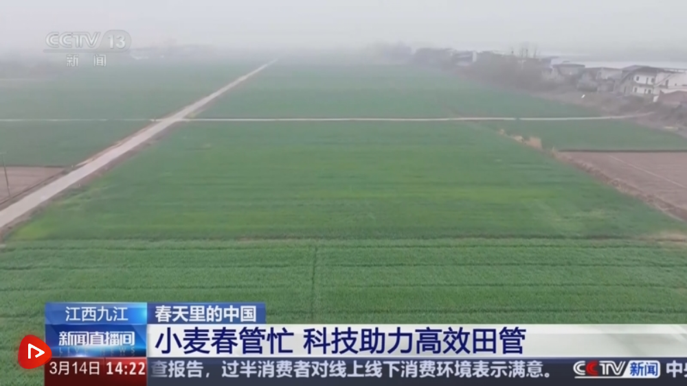在九江市柴桑區(qū),連片小麥長勢喜人。為保障春管工作的順利進行,滿載肥料的植保無人機沿著設定航線精準施肥,整個過程快捷高效。同時,農技專家也來到田間地頭,結合當前小麥生長情況,普及病蟲害防治、春季追肥等技術要點,為小麥科學種植補齊技術短板。