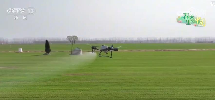 在山東濟(jì)南市,冬小麥正處于田間管理和產(chǎn)量形成的關(guān)鍵期,當(dāng)?shù)剞r(nóng)技人員綜合利用植保無人機(jī)、水肥一體化智慧滴灌等科技手段,精細(xì)化開展田間管理。