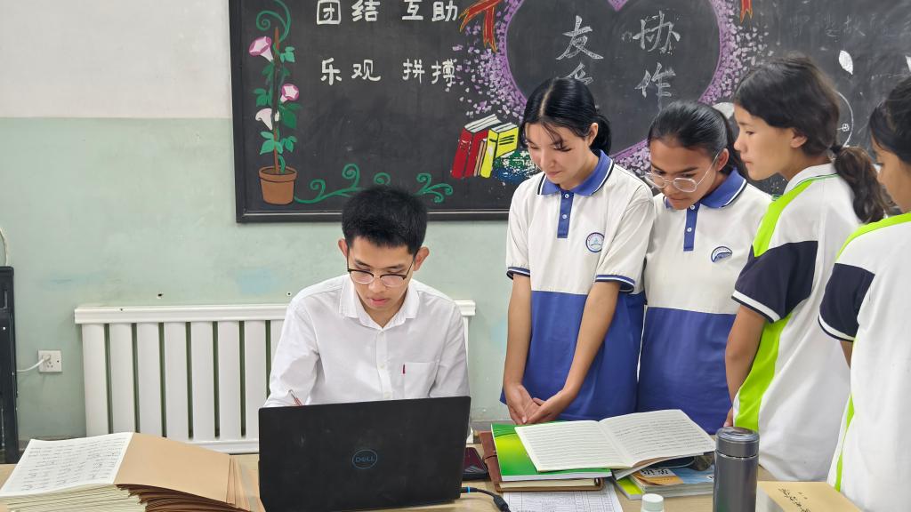 同樣來自山東的小伙兒蓋彥吉對支教事業(yè)抱有激情。2024年夏天,從中國農(nóng)業(yè)大學(xué)本科畢業(yè)后,他參加了學(xué)校的西部計劃研究生支教團(tuán),來到莎車縣第三中學(xué)任教。在教學(xué)工作中,蓋彥吉發(fā)現(xiàn),青年教師的天然親和力,能更好激發(fā)學(xué)生的求知欲。