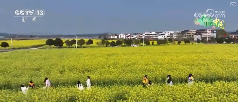 在江西省寧都縣黃石鎮(zhèn)大洲塘村,千畝連片的油菜花迎來盛花期。油菜花田里人頭攢動,游客們穿梭其中拍照打卡。春風拂過,金燦燦的油菜花海構成了一幅鄉(xiāng)村振興的秀美畫卷。