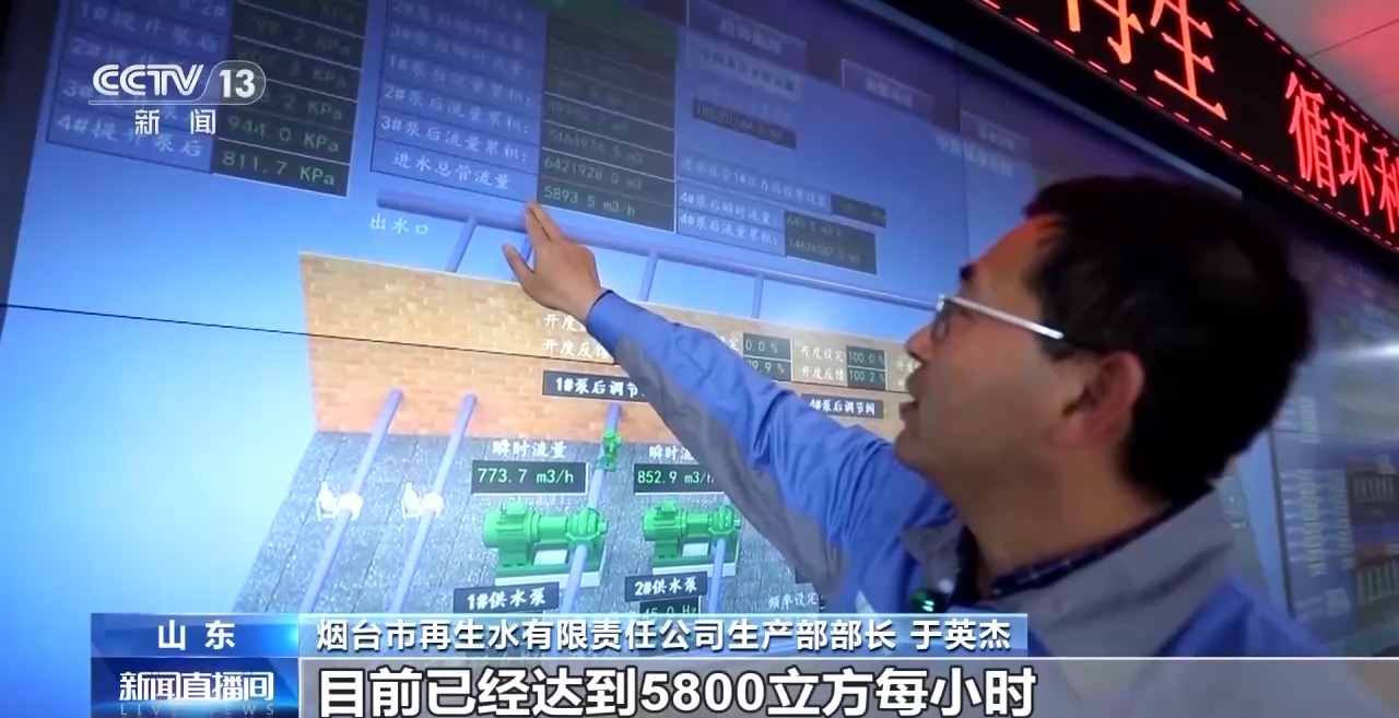 煙臺(tái)市再生水有限責(zé)任公司生產(chǎn)部部長 于英杰:萬華工業(yè)園區(qū)供水的實(shí)時(shí)流量顯示,目前已經(jīng)達(dá)到5800立方/小時(shí),全天累計(jì)14.5萬立方。