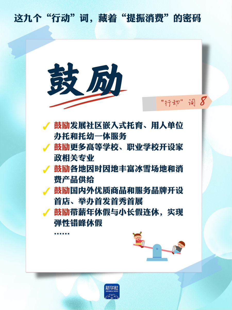 我們梳理出“方案”中使用頻率較高的九個“行動”詞,從這些不同維度的“行動”詞中,解讀“專項行動”的豐富內涵和政策“含金量”,看看哪些是立竿見影、吹糠見米的惠民行動?哪些是需要加力擴圍、加快補齊的消費短板?還有哪些是需要有序推進、以點帶面的消費“新”點?