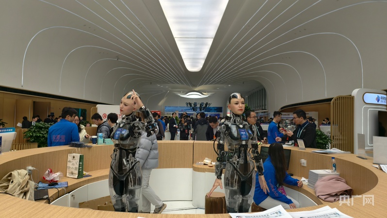3月27日,2025中關(guān)村論壇年會開幕。走進(jìn)中關(guān)村論壇永久會址,幾乎隨處可見的機器人提醒著人們:這是一片“人機共生”的天地。