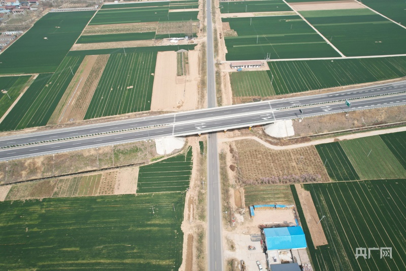 從空中俯瞰,蘭原高速(橫向)與魯陳路(縱向)成十字形(央廣網(wǎng)發(fā) 趙夢陽 攝)