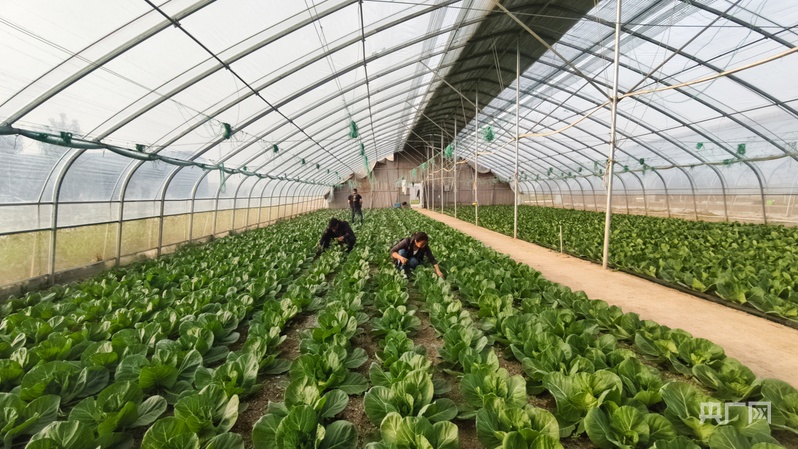 李王莊村蔬菜大棚里的甘藍長勢喜人(央廣網(wǎng)記者 郝振青 攝)