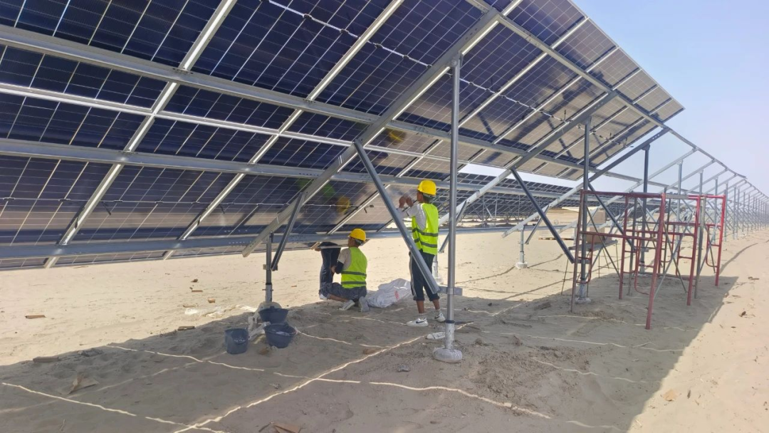光伏板不僅可以作為發(fā)電設(shè)備,其鋪助設(shè)施還能有效降低地表風(fēng)速、減少風(fēng)蝕,進(jìn)而穩(wěn)定沙土、防止沙丘移動(dòng)。此外,光伏板能有效減少地表水分蒸發(fā),有利于沙漠植被生長(zhǎng)。地區(qū)通過(guò)招商引資方式,引進(jìn)中電建集團(tuán)公司,在沙雅縣規(guī)劃實(shí)施“光伏+治沙”2萬(wàn)畝,建設(shè)25萬(wàn)千瓦光伏產(chǎn)業(yè)園區(qū)低碳轉(zhuǎn)型新能源項(xiàng)目。項(xiàng)目建成后,發(fā)電固沙一舉兩得。