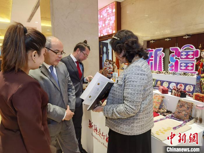 3月31日,新疆在北京舉辦有關(guān)國(guó)家駐華使節(jié)交流會(huì),來(lái)自43個(gè)國(guó)家和國(guó)際組織的70位外賓出席。圖為外賓在新疆特色產(chǎn)品展區(qū)參觀。 中新社記者 徐雪瑩 攝