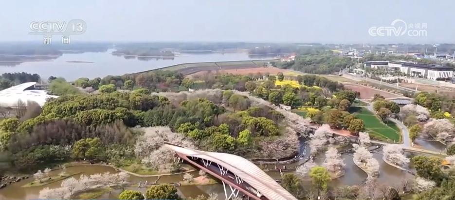 景區(qū)內(nèi)整排的櫻花綿延綻放,形成了一片粉白色的花海。微風(fēng)拂過,粉白的花瓣隨風(fēng)飄舞,游客們漫步在櫻花樹下,拿出手機(jī)、相機(jī),記錄這春日好風(fēng)景。