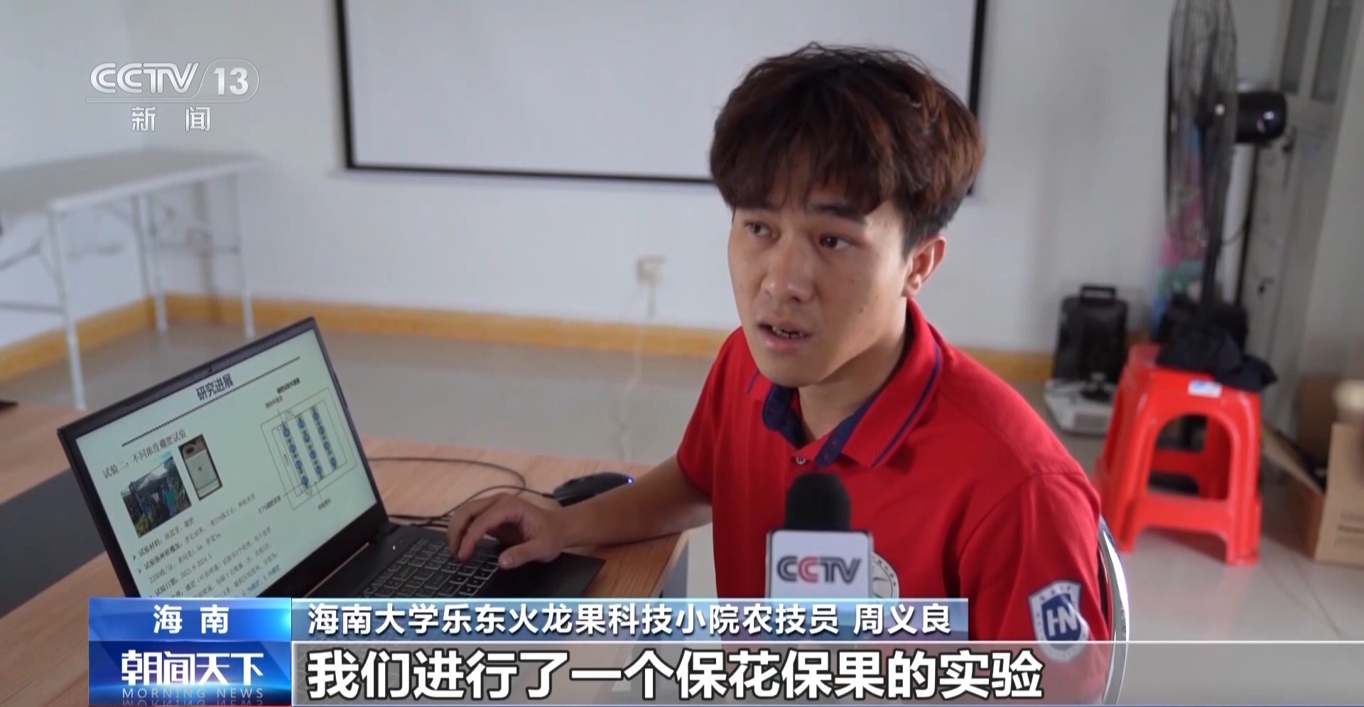 海南大學(xué)樂東火龍果科技小院農(nóng)技員 周義良:根據(jù)這個現(xiàn)狀,我們進行了一個?;ū9膶嶒灒ㄟ^不同濃度的硼肥、氨基酸肥、授粉和溫度調(diào)控來進行實驗,坐果率提升了20%左右。