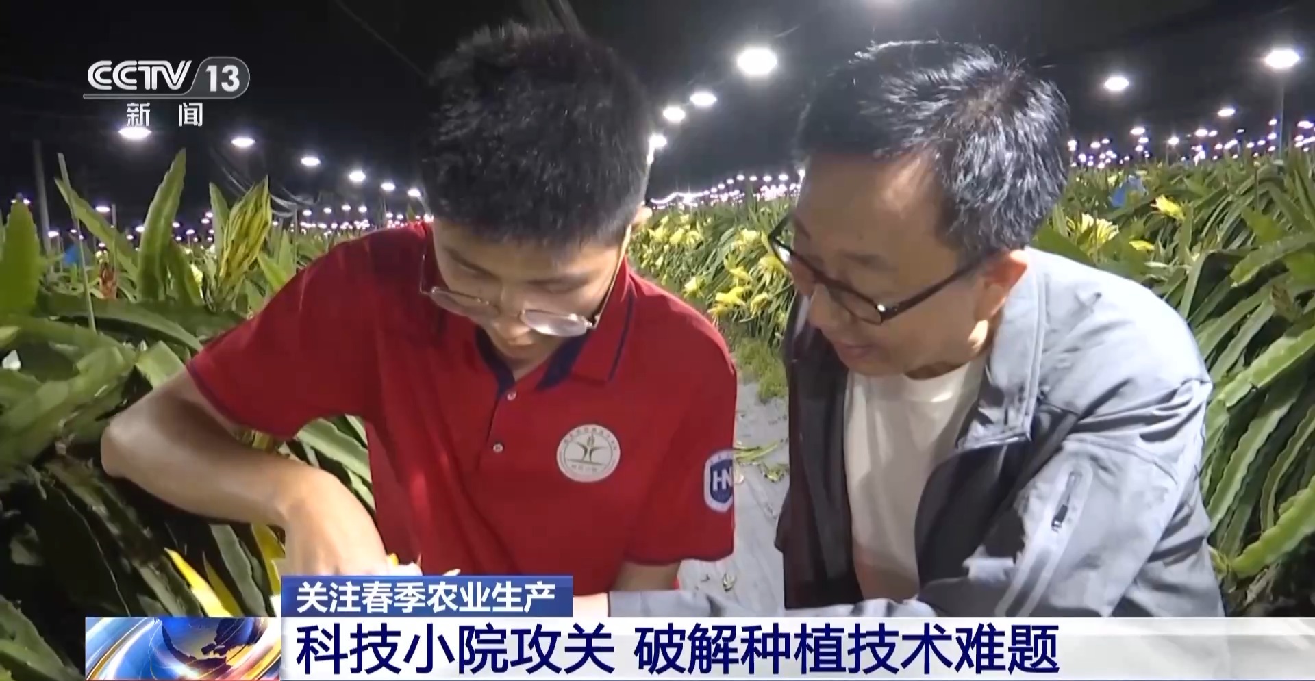 不僅僅是燕窩果,像傳統(tǒng)的熱帶水果火龍果的種植難題,也正在通過科技小院的技術(shù)得以攻破。晚上八點多,尖峰鎮(zhèn)方圓幾十里火龍果種植園區(qū)燈火通明,而夜晚點亮燈光的目的是給火龍果補光,讓枝條能夠長出花苞并順利開花?;瘕埞_花時間一般在晚上八點到十二點之間,為此科技小院的技術(shù)人員還研發(fā)了可以短時間完成授粉的技術(shù)模式。