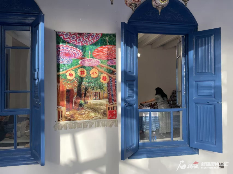修舊如舊,喚醒了老街巷。現(xiàn)在,這里有當(dāng)?shù)鼐用耖_的茶館和馕鋪,也有外地人經(jīng)營的咖啡館和旅拍店、服裝店。斑駁的土墻與雕花的木門間,墻上懸掛的各色瓷盤、托盤,無聲訴說著歲月的變遷。2024年,這里接待游客90萬人次,成為庫車市文旅新地標(biāo)。