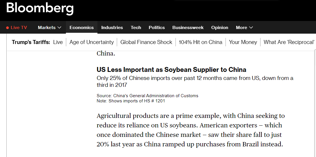 報道稱,美國作為中國大豆供應(yīng)商的重要性下降進(jìn)一步凸顯了中國的戰(zhàn)略調(diào)整。據(jù)中國海關(guān)總署數(shù)據(jù),過去12個月,中國僅25%的進(jìn)口大豆來自美國,美國在中國大豆進(jìn)口市場份額進(jìn)一步收縮。這為北京爭取更多時間,直至雙方重回談判桌。