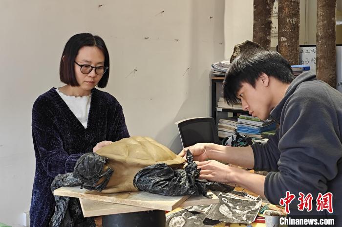 4月1日,李詩維(左一)帶領(lǐng)泉州工藝美術(shù)職業(yè)學(xué)院的學(xué)生創(chuàng)作陶瓷作品。 吳冠標(biāo) 攝