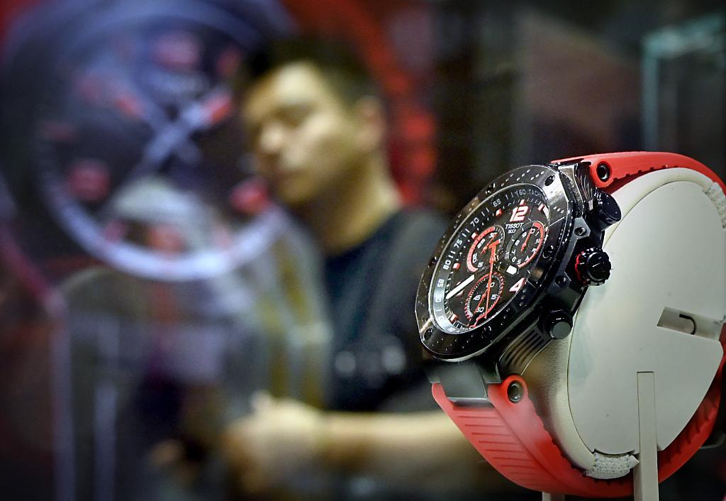 4月13日,消博會(huì)5號(hào)館精品名表展示區(qū)一角。(王頌 攝)