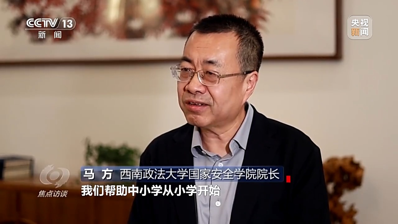 西南政法大學(xué)國家安全學(xué)院院長 馬方:從去年開始,我們開始做國家安全宣傳教育年,幫助中小學(xué)從小學(xué)開始,建立一體化課程體系。我們特別要求國家安全學(xué)的碩士、博士,海外利益安全的本科生必須要參加宣講團(tuán),在參加宣講團(tuán)的過程中去理論學(xué)習(xí)、調(diào)研,實際上是對專業(yè)學(xué)習(xí)深化實踐的過程。