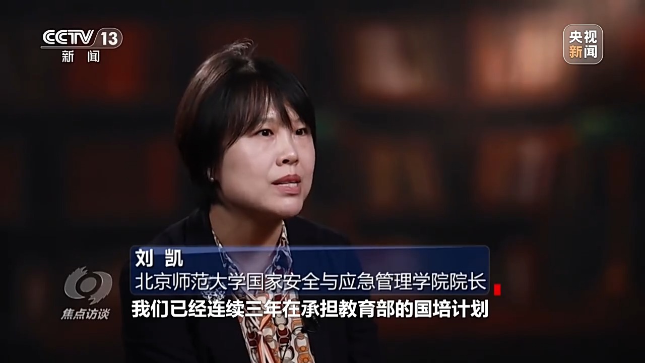 北京師范大學(xué)國家安全與應(yīng)急管理學(xué)院院長 劉凱:我們已經(jīng)連續(xù)三年承擔(dān)教育部的國培計劃。國培計劃就是給全國的中小學(xué)教師講授國家安全相關(guān)的基本知識,等他們回到自己的學(xué)校,在他們?nèi)粘J谡n的時候,就能夠把國家安全的知識融入數(shù)學(xué)課程、物理課程,包括其他一些課程中,這是一個非常可持續(xù)的路徑。