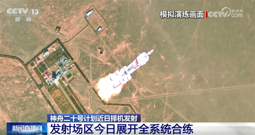 神舟二十號船箭組合體已于4月16日轉(zhuǎn)運(yùn)至發(fā)射區(qū),計(jì)劃將于近日擇機(jī)發(fā)射。4月20日,發(fā)射場區(qū)組織各單位展開全系統(tǒng)合練。