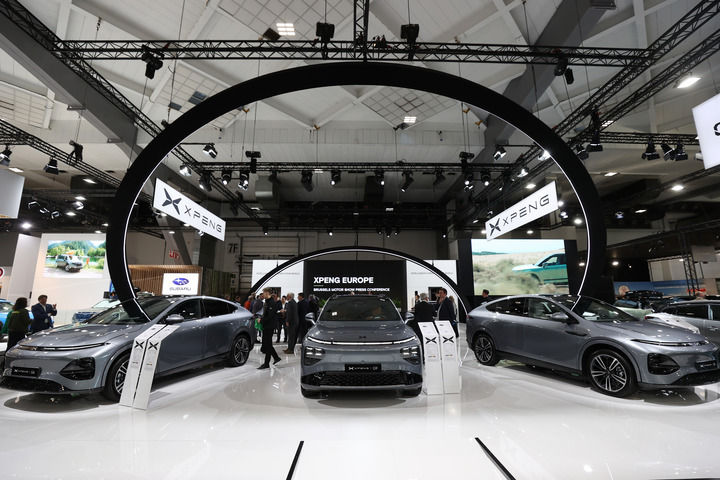 2025年1月10日,在比利時布魯塞爾,人們參觀2025布魯塞爾車展上的小鵬汽車展區(qū)。新華社記者 趙丁喆 攝