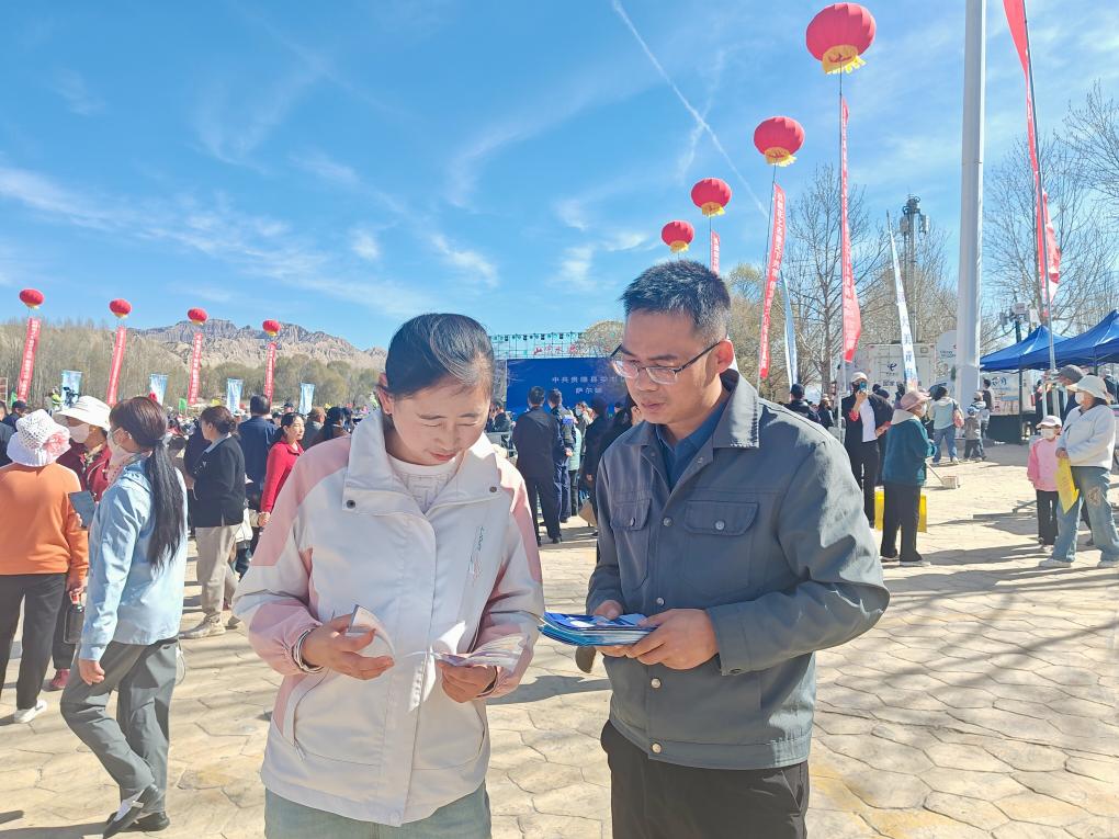 4月12日,蔡守文在招聘會(huì)現(xiàn)場(chǎng)給群眾講解就業(yè)政策。(受訪者供圖)