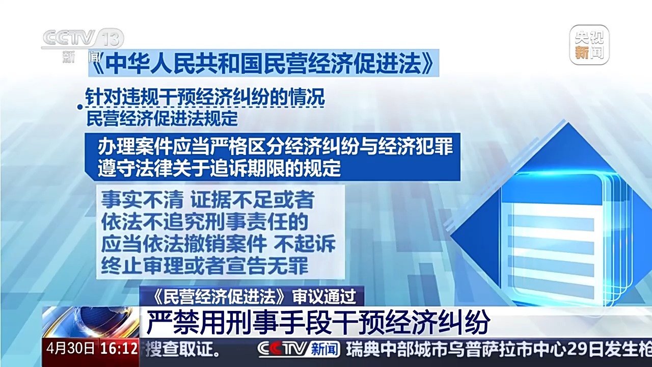 全國(guó)人大常委會(huì)法工委經(jīng)濟(jì)法室主任 楊合慶:強(qiáng)化行政執(zhí)法監(jiān)督,堅(jiān)決遏制“亂收費(fèi)、亂罰款、亂檢查、亂查封”等行為,對(duì)高效便利辦理涉企事項(xiàng)、完善人才激勵(lì)政策、健全信用修復(fù)制度、健全糾紛多元化解機(jī)制、發(fā)揮行業(yè)協(xié)會(huì)商會(huì)作用、加強(qiáng)海外綜合服務(wù)和權(quán)益保護(hù)等作出規(guī)定。